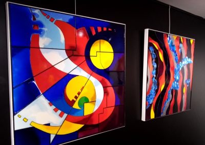 L’artiste exprime son art sur toile ou sur verre créant des oeuvres colorées, chargées d’émotion et d’énergie positive. La surprise est au rendez-vous, assurée, devant ses oeuvres.